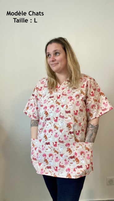 Blouse médicale pédiatrie en coton certifié Unisex– Blouse soignante joyeuse – Scrub top infirmière enfant – Fabrication artisanaleMédical